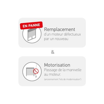 Ce kit de motorisation et de remplacement est uniquement adapté aux volets roulants Bloc-Baie.